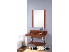 bathroom cabinet, bathroom vanity, glass basin, mirror,
